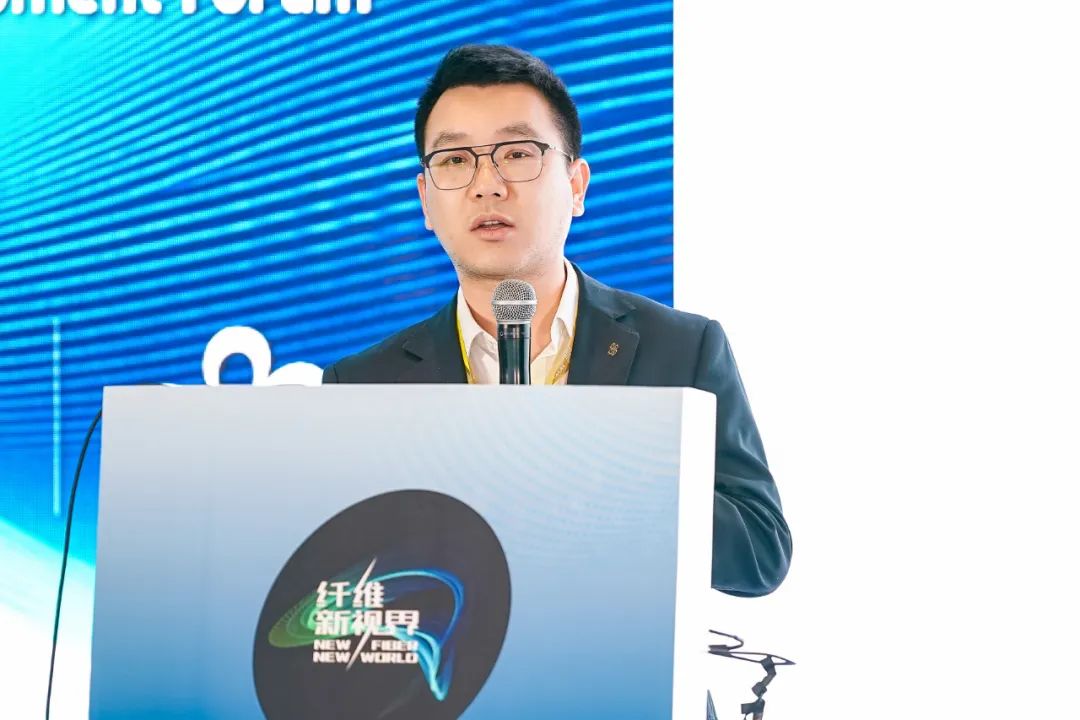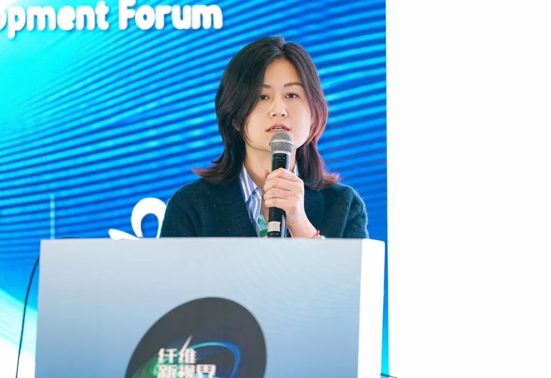 江蘇盛虹化纖新材料有限公司品牌總監繆佳做“碳捕集聚酯纖維---低碳與創新的融合”專題報告。他表示,隨著聚酯纖維產業不斷發展,其原料從原油逐漸發展為廢棄聚酯瓶、廢舊紡織品和二氧化碳。為實現“雙碳”目標貢獻盛虹力量,2021年9月盛虹啟動了“15萬噸二氧化碳捕集與綜合利用項目”并在國內率先啟動碳捕集利用-綠色甲醇-新能源材料的產業鏈建設,2024年4月正式量產碳捕集聚酯。根據第三方認證機構SGS的研究,碳捕集聚酯纖維的碳足跡較原生聚酯纖維下降28.4%。1噸碳捕集聚酯纖維可以利用約364kg的二氧化碳,盛虹一期項目擁有3萬噸碳捕集聚酯產能,相當于10000噸二氧化碳排放,也相當于100萬棵樹一年的固碳量。目前碳捕集聚酯已添加追蹤劑,并可在第三方平臺追溯。碳捕集聚酯項目榮獲“2024年國際紡聯可持續和創新獎”,同時安踏使用碳捕集聚酯纖維生產的冰甲羽絨服獲得德國ISPO AWARD全球創新獎。