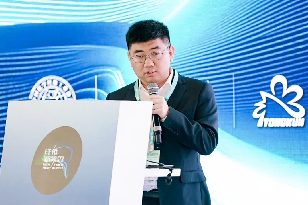 桐昆新材料研究院有限公司生物基材料研究所主管工程師徐飛做“生物基原紗抗菌聚酯纖維”專題報告。隨著健康消費理念的升級,市場對抗菌功能紡織品的需求增長。作為國內化纖行業領軍企業之一,桐昆集團始終踐行"行纖維之事,利國計民生"的產業使命。桐昆新材料研究院作為桐昆集團全資子公司,近年來聯合合作伙伴,分別以生物基大分子作為抗菌功能材料,生物基單體作為聚酯纖維原料,開發出兩款生物基原紗抗菌聚酯纖維。該創新產品具備兩大核心優勢:一是原紗具有抗菌性能,無需后道再進行抗菌改性與整理,且持久抗菌,抗菌性能不受洗滌次數影響,并且不會有抗菌劑隨汗液殘留在人體表面或進入人體中,可最大限度保護人體皮膚有益菌群不受影響;二是采用玉米、秸稈等可再生生物質原料,實現從原料到產品的全生命周期減碳。