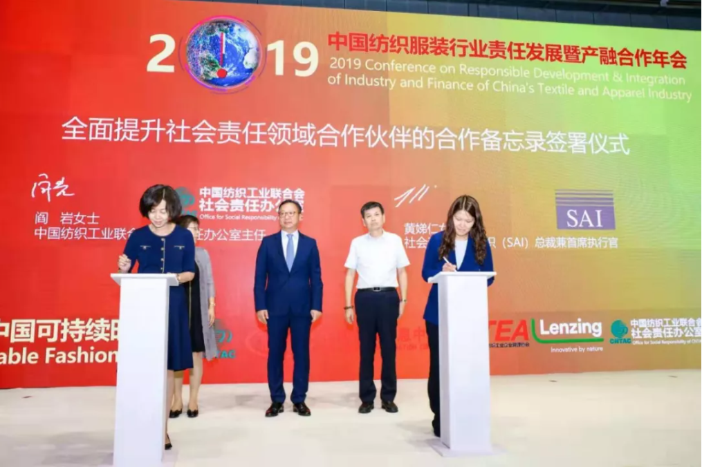 中國(guó)紡織工業(yè)聯(lián)合會(huì)社會(huì)責(zé)任辦公室與美國(guó)的社會(huì)責(zé)任國(guó)際組織(SAI)簽署了《關(guān)于全面提升社會(huì)責(zé)任領(lǐng)域伙伴關(guān)系的諒解備忘錄》,根據(jù)這一合作備忘錄,雙方將共同推動(dòng)SA8000和CSC9000T的標(biāo)準(zhǔn)合作,包括在中國(guó)紡織服裝企業(yè)中發(fā)展聯(lián)合會(huì)員,以及增強(qiáng)社會(huì)責(zé)任合作中國(guó)顧問(wèn)委員會(huì)(MAC)的作用,并將通過(guò)建立共同負(fù)責(zé)的供應(yīng)鏈,促進(jìn)中美之間更加開(kāi)放和互利的紡織服裝貿(mào)易。