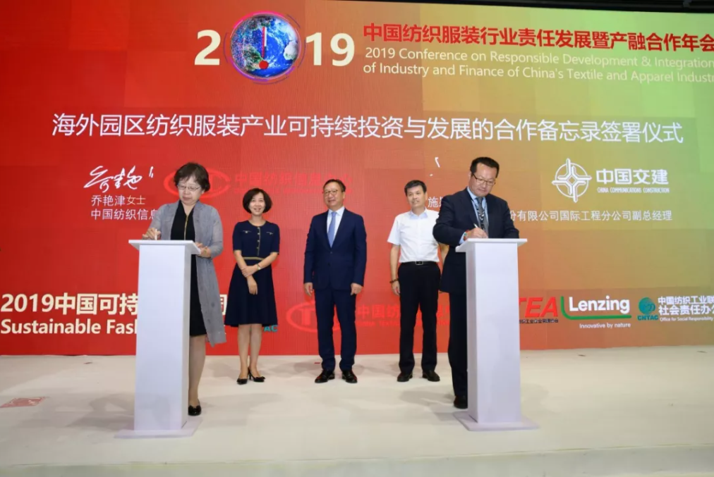 中國(guó)紡織信息中心與中國(guó)交通建設(shè)股份有限公司國(guó)際工程分公司簽署了《關(guān)于海外園區(qū)紡織服裝產(chǎn)業(yè)可持續(xù)投資與發(fā)展的合作備忘錄》,未來(lái)就海外園區(qū)紡織服裝產(chǎn)業(yè)投資與可持續(xù)發(fā)展進(jìn)行有效的合作,推動(dòng)與助力中國(guó)紡織服裝企業(yè)海外的責(zé)任投資。