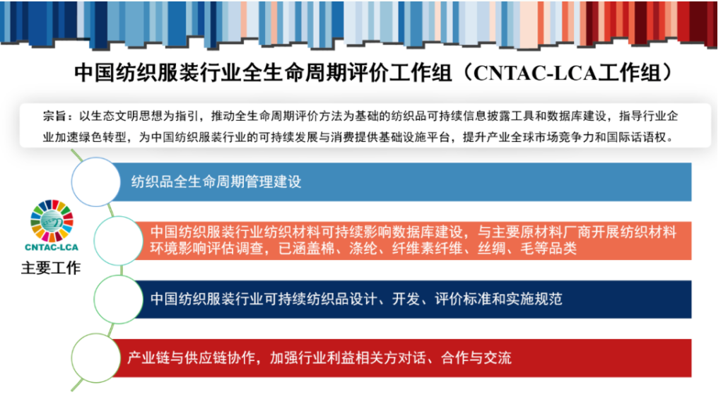 近年來,國家發布的綠色制造相關政策均強調全生命周期評價與綠色(生態)設計對于推動綠色、循環、低碳發展重要性。中國作為全球最大的紡織品生產國和未來最重要的紡織品消費國,中國紡織服裝產業亟待建立適用的產品LCA分析評價工具、本地化數據庫和信息披露體系。為此,中國紡織工業聯合會開始推動產業鏈重點相關方共同組建紡織服裝行業全生命周期評價工作組。