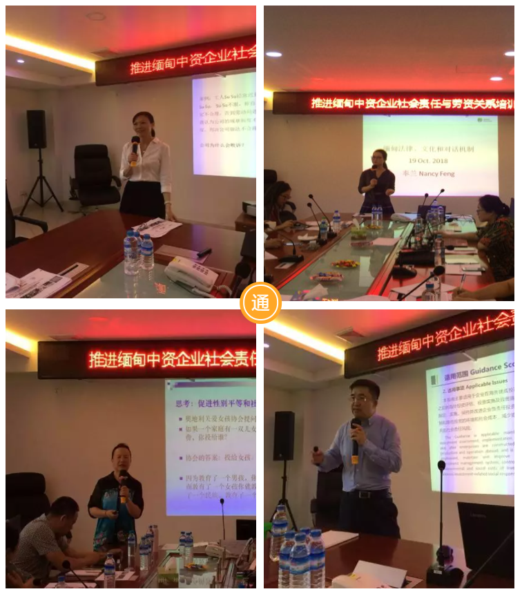 提升中資企業(yè)的社會(huì)責(zé)任意識(shí)和能力,是響應(yīng)黨中央關(guān)于“一帶一路”民心相通的號(hào)召,更好地服務(wù)于構(gòu)建人類(lèi)命運(yùn)共同體的具體行動(dòng)。為期兩天的培訓(xùn)活動(dòng)就海外企業(yè)社會(huì)責(zé)任的最新發(fā)展趨勢(shì)、企業(yè)性別平等、緬甸經(jīng)商環(huán)境、緬甸最新勞動(dòng)法、健康安全和環(huán)境保護(hù)等法律法規(guī)進(jìn)行了詳細(xì)的宣講。針對(duì)紡織服裝企業(yè)女工人數(shù)占比眾多的特點(diǎn),本次培訓(xùn)邀請(qǐng)了中紡聯(lián)社責(zé)辦專家劉明輝教授就建立工廠性別平等的溝通機(jī)制,展開(kāi)了專題演講,詳細(xì)講解了企業(yè)如何建立員工溝通機(jī)制,幫助女性員工了解掌握就業(yè)性別歧視的表現(xiàn)形式、取證技巧、投訴渠道和救濟(jì)途徑,提高女性自我保護(hù)和依法維權(quán)的理念意識(shí),營(yíng)造良好的社會(huì)環(huán)境,改善企業(yè)人力資源管理、提高社會(huì)責(zé)任意識(shí),打造平等就業(yè)環(huán)境。基于緬甸文化的溝通和管理機(jī)制和促進(jìn)企業(yè)勞資關(guān)系對(duì)話,來(lái)自SMART Myanmar的奉蘭老師進(jìn)行了全面專業(yè)權(quán)威的解讀,為參加培訓(xùn)的中資企業(yè)及時(shí)了解緬甸的最新法律、法規(guī),建立有效的對(duì)話河溝通機(jī)制,及時(shí)消除危機(jī),應(yīng)對(duì)潛在風(fēng)險(xiǎn)。來(lái)自英國(guó)道德貿(mào)易組織ETI的高燕女士就ETI的基本守則和社會(huì)責(zé)任要求進(jìn)行了宣貫。參加培訓(xùn)的眾多企業(yè)代表紛紛表示:通過(guò)本次培訓(xùn)企業(yè)提高管理水平和管理者的綜合素質(zhì),培訓(xùn)活動(dòng)是一個(gè)跟行業(yè)優(yōu)秀企業(yè)學(xué)習(xí)和借鑒的重要平臺(tái)和窗口,期待專題培訓(xùn)能夠持續(xù)進(jìn)行。來(lái)自新華社、央視、國(guó)際廣播電視臺(tái)的記者進(jìn)行了跟蹤報(bào)道。