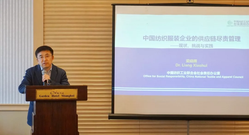 中國紡織工業聯合會社會責任辦公室首席研究員梁曉暉博士介紹了經合組織與中紡聯的合作內容、進展情況以及國際化的標準對中國的幫助和影響。