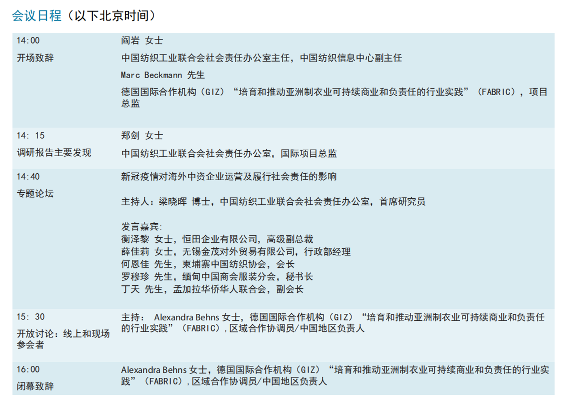 《“新冠”疫情對海外中資紡織服裝企業(yè)運營及社會責(zé)任影響 》調(diào)研報告發(fā)布會即將召開