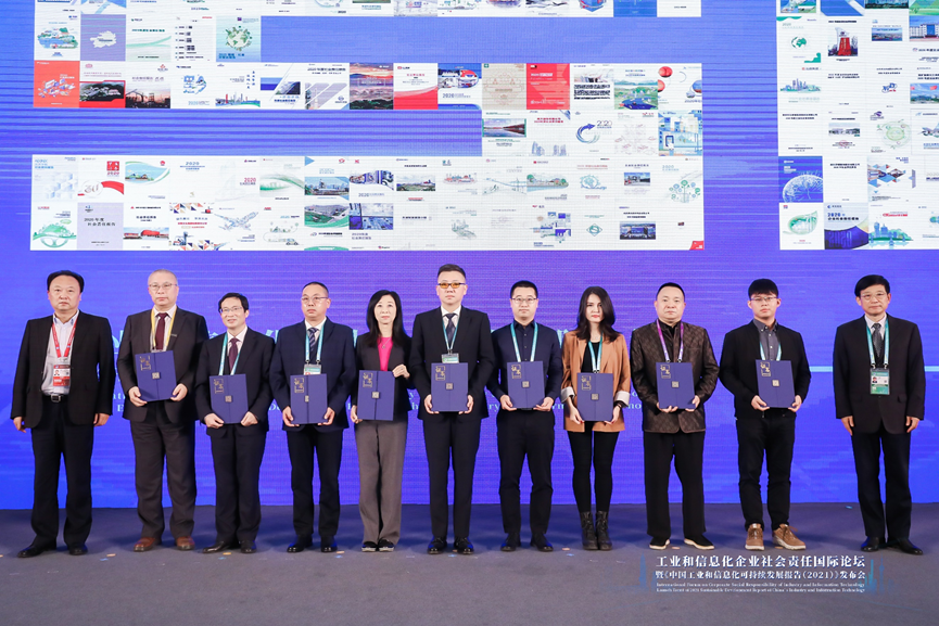 本屆論壇還發布了《中國工業和信息化可持續發展報告(2021)》、《企業碳中和路徑圖(Corporate Net Zero Pathway)》、《共同富裕:企業社會責任助力工業和信息化大中小企業融通發展》研究報告、《2020-2021年度電子信息行業社會責任建設發展報告》、《中國信息通信行業社會責任研究報告》、《安徽省工業企業社會責任建設報告》、《天津市濱海新區工業企業社會責任建設報告》,并推薦典范企業代表現場簽署了《工業和信息化企業可持續發展倡議》。