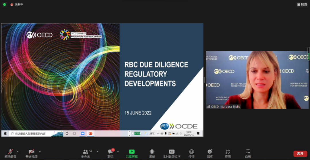 經(jīng)合組織(OECD)負責任商業(yè)行為中心金融監(jiān)管部主任Barbara Bijelic女士發(fā)言