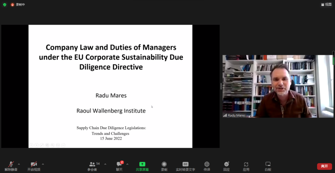 瑞典羅爾·瓦倫堡人權(quán)與人道法研究所高級研究員Radu Mares先生發(fā)言