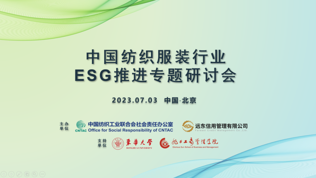 7月3日,中國紡織工業聯合會社會責任辦公室聯合遠東信用管理有限公司共同舉辦的中國紡織服裝行業ESG推進專題討論會在中國紡織信息中心舉行。東華大學旭日工商管理學院作為支持單位參與本次會議。