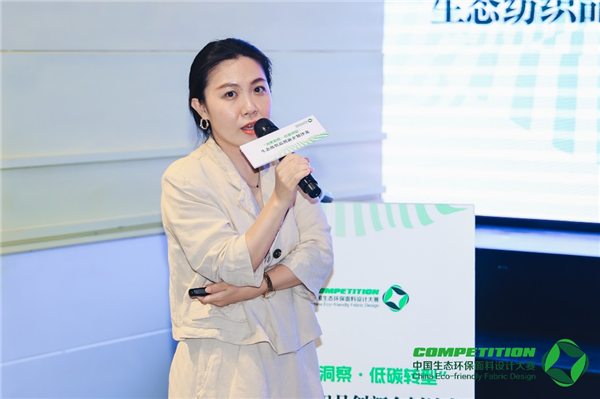 “在綠色設計、清潔生產、綠色物流、循環(huán)應用等領域,我們都在強調通過綠色技術推動綠色價值鏈的創(chuàng)新。”中國紡織信息中心創(chuàng)意設計部高級產品經(jīng)理于婷婷在會上對2023第六屆中國生態(tài)環(huán)保面料設計大賽主題和評審標準進行了解讀。她指出,綠色消費一方面是消費者的選擇,另一方面更有賴于供給側的引導。行業(yè)需要從時尚性、創(chuàng)新性、商業(yè)性等綜合維度,將“綠色時尚”從設計端貫穿到產品端。