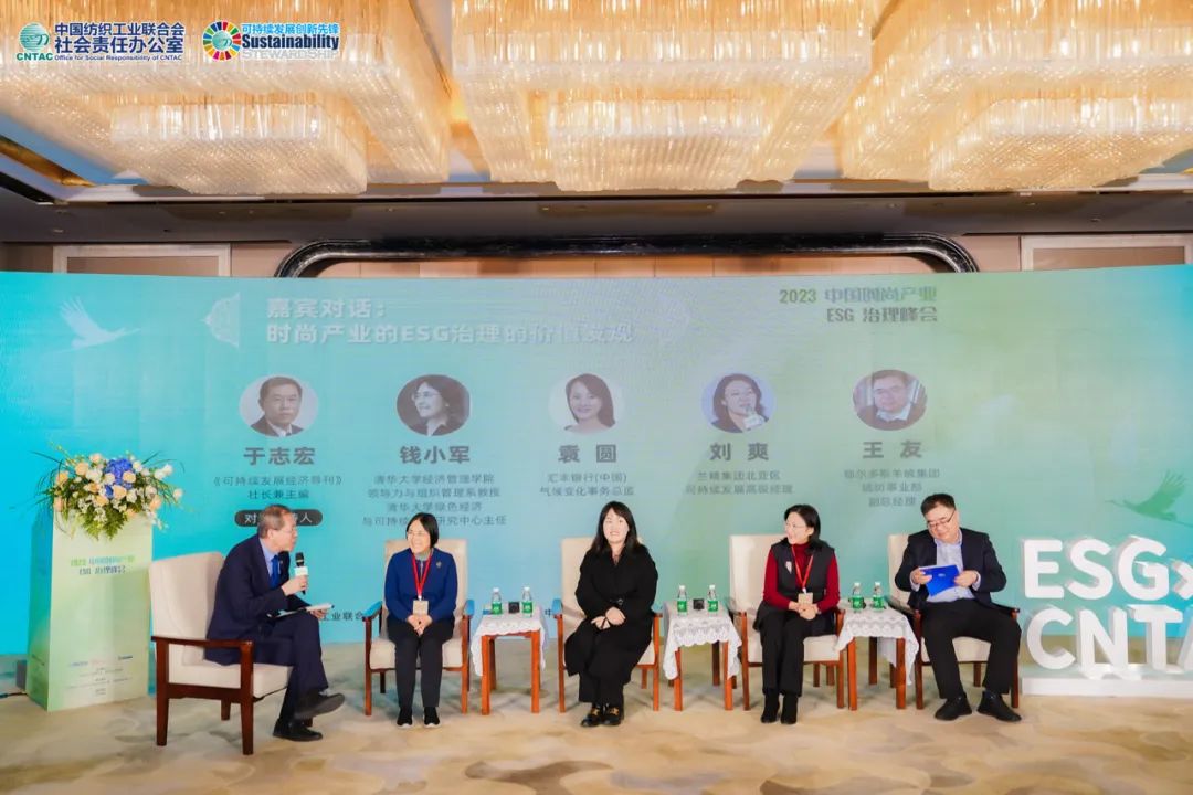 除內(nèi)容分享外,會(huì)議設(shè)置了嘉賓對(duì)話環(huán)節(jié),由《可持續(xù)發(fā)展經(jīng)濟(jì)導(dǎo)刊》社長兼主編于志宏主持,邀請清華大學(xué)經(jīng)濟(jì)管理學(xué)院領(lǐng)導(dǎo)力與組織管理系教授、清華大學(xué)綠色經(jīng)濟(jì)可持續(xù)發(fā)展研究中心主任錢小軍、匯豐銀行(中國)氣候變化事務(wù)總監(jiān)袁圓、蘭精集團(tuán)北亞區(qū)可持續(xù)發(fā)展高級(jí)經(jīng)理劉爽、鄂爾多斯羊絨集團(tuán)絨紡事務(wù)部副總經(jīng)理王友,圍繞時(shí)尚產(chǎn)業(yè)ESG治理的價(jià)值發(fā)現(xiàn)進(jìn)行探討。