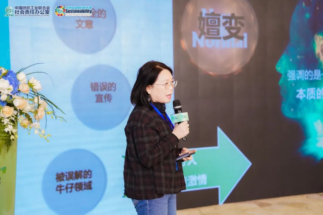 前進(jìn)牛仔CEO王宗文作為制造企業(yè)代表分享了她的經(jīng)驗(yàn)。她表示,牛仔行業(yè)經(jīng)過多年技術(shù)發(fā)展,已擺脫高耗水高污染的標(biāo)簽,且完全有潛力成為最環(huán)保的面料之一,這主要基于其原料生物基、短流程制造、化學(xué)品少、常溫染色、洗水技術(shù)變革、洗滌微纖少等特點(diǎn)。當(dāng)談到企業(yè)ESG管理經(jīng)驗(yàn)時(shí),她提到前進(jìn)牛仔近年來主要在可持續(xù)采購、設(shè)備開發(fā)、產(chǎn)品研發(fā)、能源管理、廢物治理、智能化改造幾個(gè)方面發(fā)力,如持續(xù)提升可持續(xù)纖維使用比例、使用環(huán)保染色設(shè)備、實(shí)行54項(xiàng)技改活動(dòng)、實(shí)現(xiàn)年循環(huán)用水46萬噸,數(shù)字孿生技術(shù)實(shí)現(xiàn)車間水電氣數(shù)據(jù)實(shí)時(shí)跟蹤等。