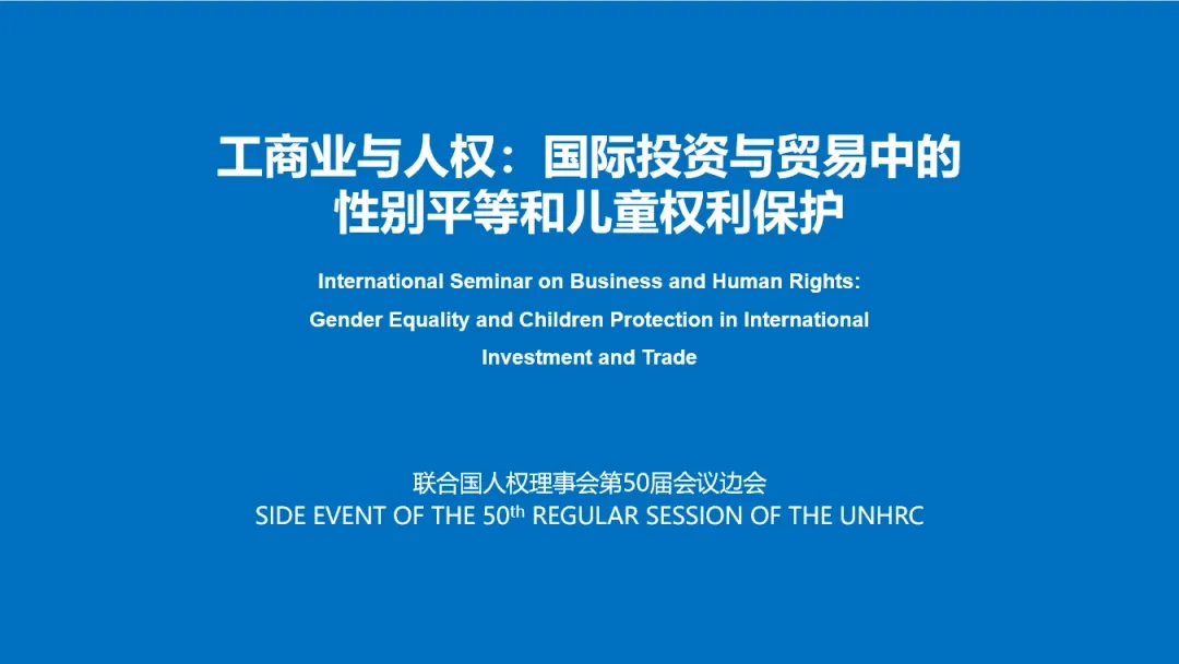 在聯合國人權理事會第50屆會議期間,以“工商業與人權:國際投資與貿易中的性別平等和兒童權利保護”為主題的云上邊會7月6日舉行。