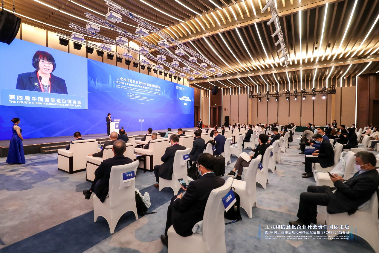 2021年11月7日,第四屆進博會工業(yè)和信息化企業(yè)社會責任國際論壇暨《中國工業(yè)和信息化可持續(xù)發(fā)展報告(2021)》發(fā)布會在上海國家會展中心成功舉辦。